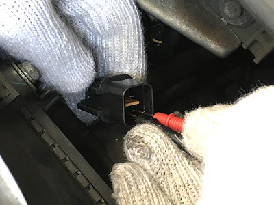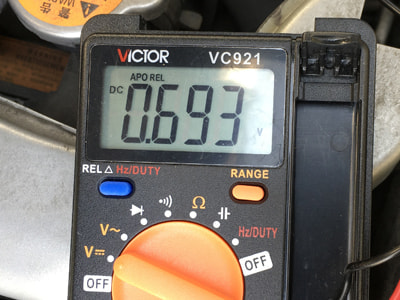 3、O2センサーの信号出力線の端子間の電圧を計測します。